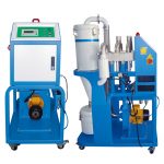 系統(tǒng)分1#、2#輪流工作,1#分離粉體,2#自動(dòng)清網(wǎng)過(guò)濾袋,循環(huán)運(yùn)行。系統(tǒng)配歐化主機(jī),采用智能PLC程序,人性化界面顯示,方便操控。